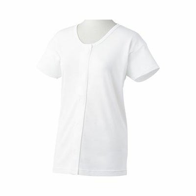 ・脇穴付きでらくらく検温!・介護・リハビリに使いやすい前開き肌着。・面ファスナーで着脱簡単!・綿100%の無蛍光素材を使用。・検温穴付き、トイレで裾を汚しにくい設計。 サイズ(バスト)/M:79~87cm、L:86~94cm、LL:93~101cm 素材/綿100% 生産国/中国 手洗い可 洗濯機可(40度) 脱水機不可 乾燥機不可