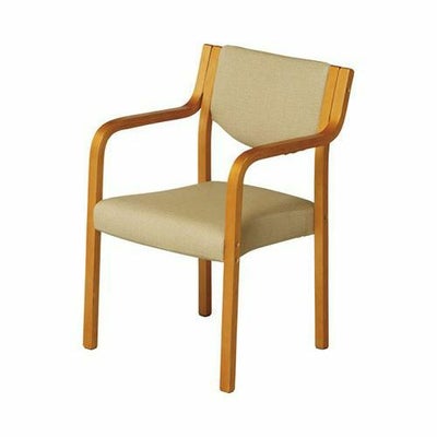 ・抗菌・耐アルコール生地を使用した椅子です。・抗菌剤を練り込んでます。・ウェービングテープを使用しているので、クッション性に優れた座り心地です。・コンパクト設計です。・4脚までスタッキングできます。 サイズ/幅51×奥行56×高さ77.5cm、座面高:41cm、ひじ掛け高:61.2cm 重さ/8kg 材質/フレーム:成型合板、ポリウレタン塗装、座:モールドウレタン+ウェービングテープ、張地:合成皮革(ポリ塩化ビニル) 耐荷重/80kg 納期/1~2週間 生産国/中国 完成品