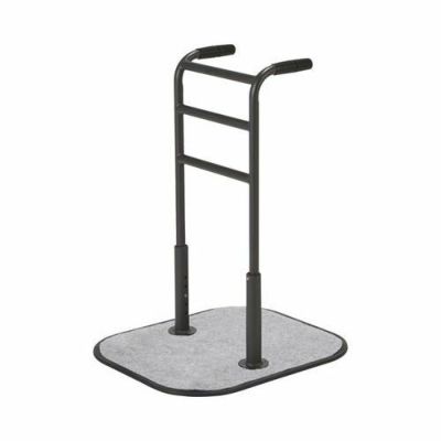 ・ハンドル式タイプで立ち上がりをサポート。・付属の蓄光テープで部屋を暗くしても手すりの位置がわかるので安心!・ハンドルにする事でつかまりやすく、立ち上がった際も体重を掛けやすい仕様でより安心!ベッドからはもちろん、車いすからの移動も安心です。 サイズ/ベース部:幅50.5×長さ60.5×厚さ1cm、手すり部:幅32.5×高さ70~80(5段階/2.5cm)cm、グリップ:長さ約12cm 重さ/11.8kg 材質/スチール 付属品/蓄光テープ(2枚)、底板用カーペット 生産国/ベトナム