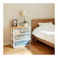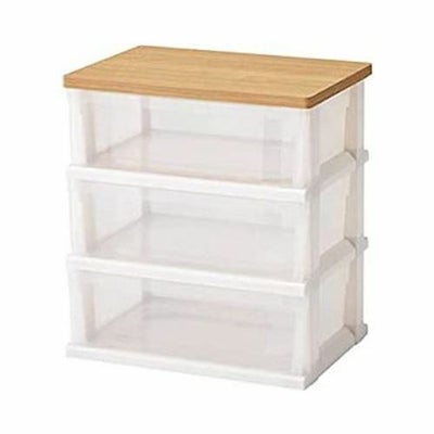 ・木製天板付きのシンプルな多段収納ケースです。引出しストッパー付きで安心してお使いいただけます。・前後どちら向きでもセット可能な引出し。・天板のハニカム構造。・外枠側面を斜めに設計。・移動に便利なコロ付き。・空間になじむナチュラルデザイン。※積み重ねて使用はできません。 サイズ/幅55×奥行40×高さ60cm 重さ/約5.49kg 材質/天板:プリント化粧合板、キャスター・本体・引出:ポリプロピレン 生産国/日本 要組立(工具不要)
