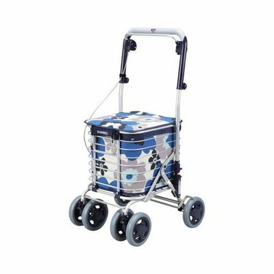 ・座れるタイプのワイヤーカート。カゴを載せてらくらくお買い物。・座面を上方向に90度回転させると、フタが自動的に固定され、両手で簡単に荷物の出し入れができます。・ハンカチ・ペットボトル等の小物入れを装備しました。・コンパクトに折りたためて自立スペースを取られずに収納できます。