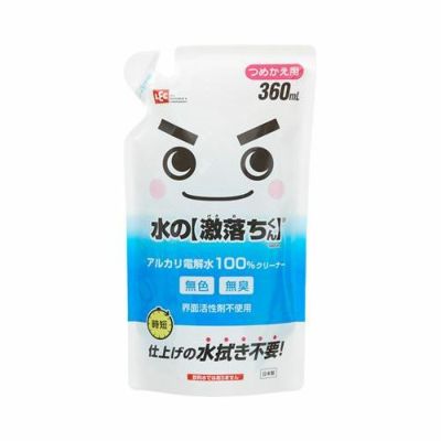 ・洗剤を使いたくない場所に。・水なのにパワフル!水だから安心!アルカリ電解水100%のクリーナーです。・水を独自の方法で電気分解したアルカリ電化水100%の無色無臭のクリーナーです。・水拭きでは取れない汚れをアルカリイオン(マイナスイオン)が包み込んで浮かせて落します。・界面活性剤を使用していないので、手肌にやさしく、排水も汚しません。・キッチンの油汚れ、リビングの手あか汚れなど家中まるごとコレ1本でお掃除できます。しかも、2度拭き不要。・界面活性剤不使用なので、洗剤を使いたくない電子レンジや冷蔵庫内、車内のお掃除にも適しています。・界面活性剤不使用なので、ベビー用品やこどものおもちゃ、ペット用品などにも最適です。・ニオイの元となる汚れや雑菌を取り除くので、除菌・消臭効果もあります。※商品の外観仕様等は、予告なく変更することがあります。