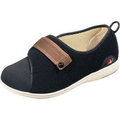 ・つま先は広く、伸縮するので、外反母趾・むくみ・爪の変形の方にも対応。 サイズ/21.0~28.0cm(1.0cmきざみ)、ワイズ:4E 重さ/約160g(片足23.0cm) 材質/ナイロンパイル面ファスナー、ストレッチ素材 生産国/中国、ベトナム 通気性 室内用
