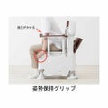 ・ご利用者の症状変化に合わせて「やりたい」を「できる」に変えるポータブルトイレ。・3つを支えるマルチアシストトイレ。・1.移乗動作サポート 移乗動作にあわせてひじ掛け2段階に調整可能:ノーマルポジションで高さ0、6~24cmに設置。0cmは座位移乗動作をサポート。ハイポジションで高さ0、6~30cmに設定。最大30cmは立位移乗での安定した立ち座りに最適。2.排泄サポート 姿勢保持グリップ:前傾することで腹圧をかけて排泄を促します。 体格に合わせてワンタッチ調節:排泄姿勢や移乗動作に合わせて脚やひじ掛けを楽らく調節。 片手で切れるペーパーホルダーR:片マヒの方でも楽に切れます。3.片付けサポート 節水バケツ:少ないお水(1L)で運ぶのが楽らく。 キャスター:キャスター標準装備、お掃除も楽らく。