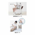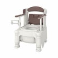 ・ご利用者の症状変化に合わせて「やりたい」を「できる」に変えるポータブルトイレ。・3つを支えるマルチアシストトイレ。・1.移乗動作サポート 移乗動作にあわせてひじ掛け2段階に調整可能:ノーマルポジションで高さ0、6~24cmに設置。0cmは座位移乗動作をサポート。ハイポジションで高さ0、6~30cmに設定。最大30cmは立位移乗での安定した立ち座りに最適。 側方ガード:ひじ掛け昇降、お尻拭き時の座位をサポート。2.排泄サポート 姿勢保持グリップ:前傾することで腹圧をかけて排泄を促します。 体格に合わせてワンタッチ調節:排泄姿勢や移乗動作に合わせて脚やひじ掛けを楽らく調節。 片手で切れるペーパーホルダーR:片マヒの方でも楽に切れます。3.片付けサポート 節水バケツ:少ないお水(1L)で運ぶのが楽らく。 キャスター:キャスター標準装備、お掃除も楽らく。
