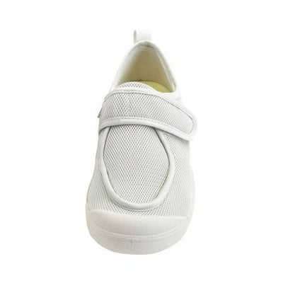 ・洗濯機で洗えるリハビリシューズ。・丸洗いOKすぐ乾く。通気性の良いメッシュ生地を使用。洗濯機で洗えて、速乾性にも優れており、いつでも清潔に。・メッシュタイプのインソールで足のムレも気にならず、いつも快適な履き心地。・靴内に臭いやムレがこもりにくいよう、靴底に小さな空気穴を開けています。・しっかりした「かかと芯」と「靴底」でリハビリ歩行に最適です。・履き口は大きく開いて履きやすい。・ベルトで足周りをしっかりホールド。・安定感のある踵と靴底。・踵から土踏まずまで広くフラットな形状。・正しい位置で曲がるしっかりとした靴底。・つま先はつまずきにくい形状。