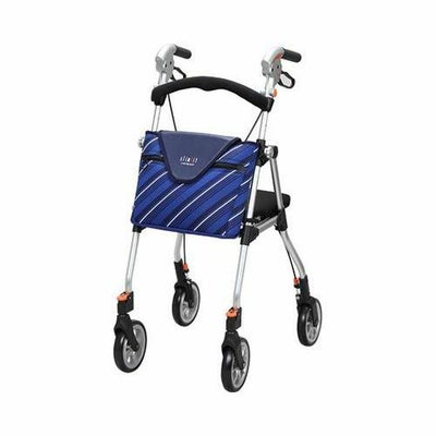 ・ハンドルグリップが180度回転する2WAYハンドル構造。 サイズ/幅49×奥行57×高さ83~94cm、折りたたみ時:幅30×高さ88cm、座面:幅32.5×奥行27cm、座面高:48cm、ハンドル内幅:35cm 車輪サイズ/前輪15×後輪15cm 重さ/4.9kg 材質/フレーム:アルミ バッグ容量/5L 積載荷重/2kg 最大使用者体重/80kg 標準機能/折りたたみ、手元ブレーキ、駐車ブレーキ、座面 生産国/日本