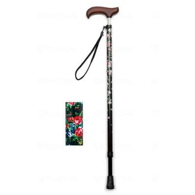 夢ライフステッキ スリムネック伸縮スリムタイプ(柄)/ブラックフローラル/業務用/新品/小物送料対象商品