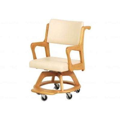 室内での移動が楽で木の温かみがある介助型木製車いす ○回転ロック機能、ストッパーキャスター付きです。