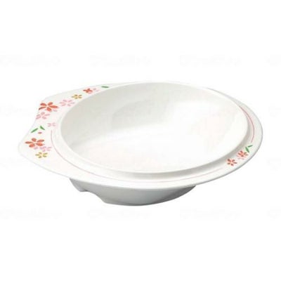 「持つ」「手を添える」をサポート ○持ちやすいように、フチを幅広にして手にフィットするようにカーブをつけています。 ○フチの裏側にラインを入れて持ちやすく、すべりにくくしています。 ○片手でもすくいやすいよう側面の角度を立てており、底はすべり止め加工をしています。