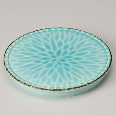 商品名:渕錆マリンブルー菊彫高台丸皿