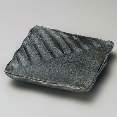 商品名:黒窯変そぎ足付角皿