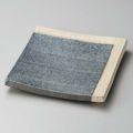 商品名:黒窯変角白掛け分け5.0足付角皿