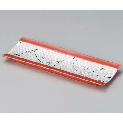 黒とばしラスター赤釉筋彫突出皿 26.2×9.2×1.9cm 126-129/業務用/新品/小物送料対象商品