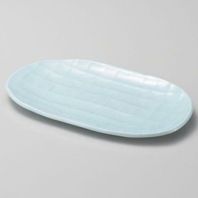 青磁小判焼物皿 21.3×13.5×1.6cm 143-119/業務用/新品/小物送料対象商品