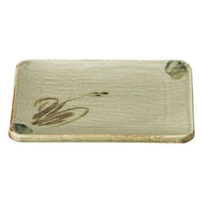 商品名:織部流し芦絵長角9.0皿(浜付き)