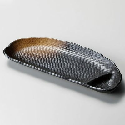 商品名:黒茶吹き半月仕切皿
