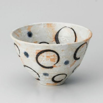 商品名:白タタキ紺水玉丸紋飯器(大)