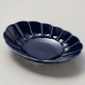 商品名:ルリ釉菊彫楕円皿
