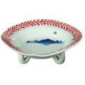 商品名:5寸皿赤シダ染付山足付