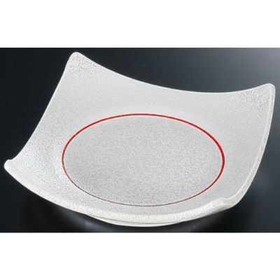 商品名:陶器 ラスター朱線四方上り皿