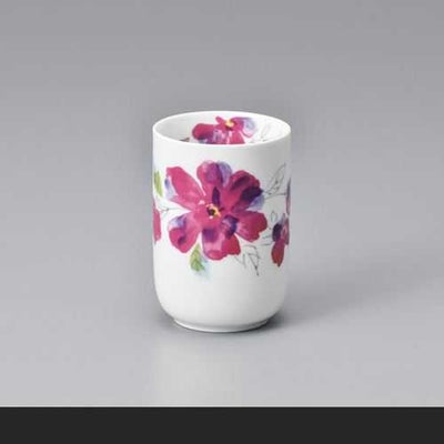 商品名:赤花花絵白磁長湯呑