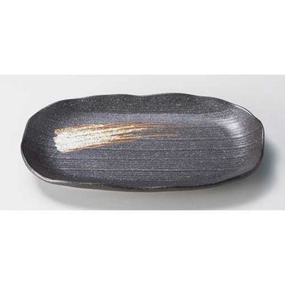 商品名:黒備前/ソバ刷毛千筋23cm焼物皿