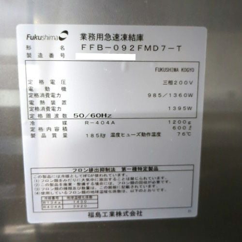 他の画像を見る 直接引取の場合は送料追加なし【野田店】 【業界最長1年保証】【中古】急速凍結庫 フクシマガリレイ(福島工業) FFB-092FMD7-T 幅900×奥行850×高さ2030 三相200V 【送料別途見積】【業務用】【野田店在庫】 販売価格 ¥ 506,000 税込