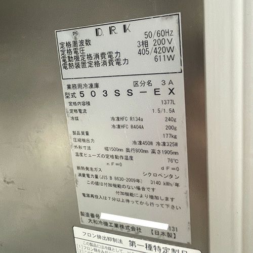 他の画像を見る 【なんば店】 【業界最長1年保証】【中古】縦型冷凍庫 大和冷機 303YSS-NP-EC 幅900×奥行650×高さ1905 三相200V 【送料別途見積】【業務用】【なんば店在庫】 販売価格 ¥ 137,060 税込 詳細を見る