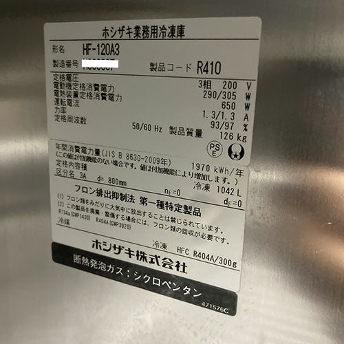 他の画像を見る 【広島西店】 【業界最長1年保証】【中古】縦型冷凍庫 ホシザキ HF-120A3 幅1200×奥行800×高さ1910 三相200V 【送料無料】【業務用】【広島西店在庫】 販売価格 ¥ 250,470 税込 詳細を見る
