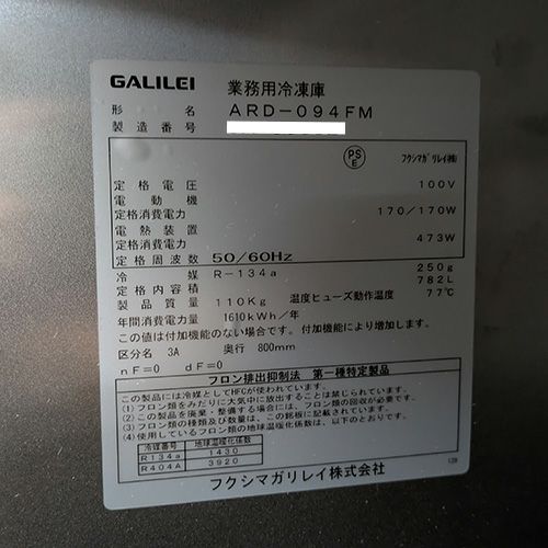 他の画像を見る 直接引取の場合は送料追加なし【新宿店】 【業界最長1年保証】【中古】縦型冷凍庫 フクシマガリレイ(福島工業) ARD-094FM 幅900×奥行800×高さ1940 【送料別途見積】【業務用】【新宿店在庫】 販売価格 ¥ 213,950 税込 詳細を見る