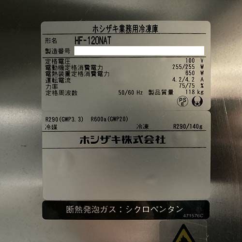 他の画像を見る 直接引取の場合は送料追加なし【福岡店】 【中古】縦型冷凍庫 ホシザキ HF-120AT-1-ML 幅1200×奥行650×高さ1910 【送料別途見積】【業務用】【福岡店在庫】 販売価格 ¥ 289,520 税込 詳細を見る