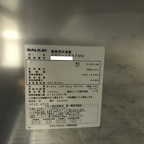 他の画像を見る 直接引取の場合は送料追加なし【岐阜店】 【業界最長1年保証】【中古】縦型冷凍庫 フクシマガリレイ(福島工業) GRD-154FMD 幅1490×奥行800×高さ1950 三相200V 【送料別途見積】【業務用】【岐阜店在庫】 販売価格 ¥ 319,000 税込 詳細を見る
