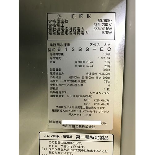 他の画像を見る 直接引取の場合は送料追加なし【岐阜店】 【業界最長1年保証】【中古】縦型冷凍庫 大和冷機 613SS-EC 幅1800×奥行800×高さ1905 三相200V 【送料別途見積】【業務用】【岐阜店在庫】 販売価格 ¥ 154,000 税込 詳細を見る