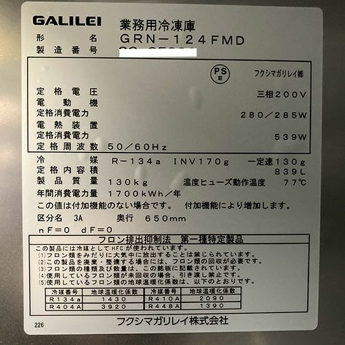 他の画像を見る 直接引取の場合は送料追加なし【春日井店】 【業界最長1年保証】【中古】縦型冷凍庫 フクシマガリレイ(福島工業) GRN-124FMD 幅1200×奥行650×高さ1900 三相200V 【送料別途見積】【業務用】【春日井店在庫】 販売価格 ¥ 244,200 税込 詳細を見る