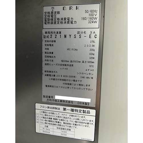 他の画像を見る 直接引取の場合は送料追加なし【盛岡店】 【業界最長1年保証】【中古】縦型冷凍庫 ダイレイ 221NYSS-EC 幅600×奥行650×高さ1905 【送料別途見積】【業務用】【盛岡店在庫】 販売価格 ¥ 209,000 税込 詳細を見る