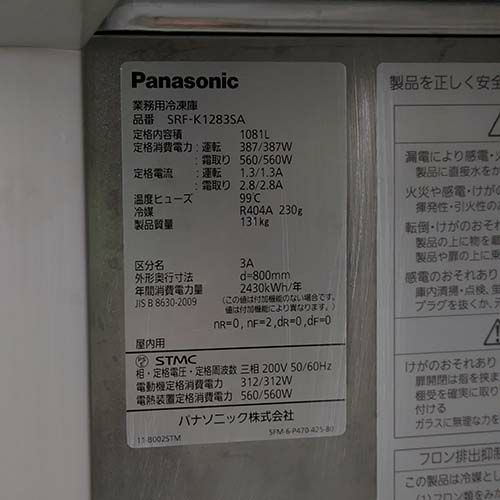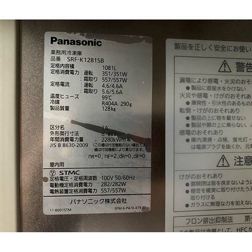 他の画像を見る 直接引取の場合は送料追加なし【大宮店】 【業界最長1年保証】【中古】縦型冷凍庫 パナソニック(Panasonic) SRF-K1283SA 幅1200×奥行800×高さ1920 三相200V 【送料別途見積】【業務用】【大宮店在庫】 販売価格 ¥ 197,670 税込 詳細を見る