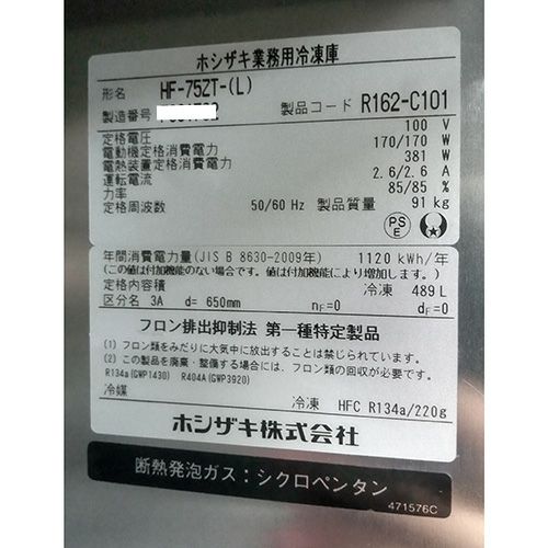 他の画像を見る 直接引取の場合は送料追加なし【東京ラーメン専門館】 【業界最長1年保証】【中古】縦型冷凍庫 ホシザキ HF-75ZT-(L) 幅750×奥行650×高さ1890 【送料別途見積】【業務用】【東京ラーメン専門館在庫】 販売価格 ¥ 154,000 税込 詳細を見る