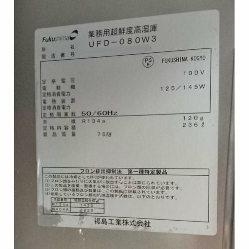 他の画像を見る 【名古屋西店】 【業界最長1年保証】【中古】超鮮度高湿庫 フクシマガリレイ(福島工業) UFD-080W3 幅770×奥行800×高さ850 【送料無料】【業務用】【名古屋西店在庫】 販売価格 ¥ 151,800 税込