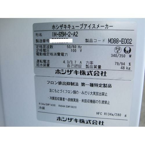 他の画像を見る 委託先様からの配送です。 【中古】製氷機 ホシザキ IM-65TM-1 幅800×奥行525×高さ800 【送料別途見積】【業務用】【委託販売-rks】 定価 ¥ 940,500 (税込)のところ 販売価格 ¥ 231,000 税込