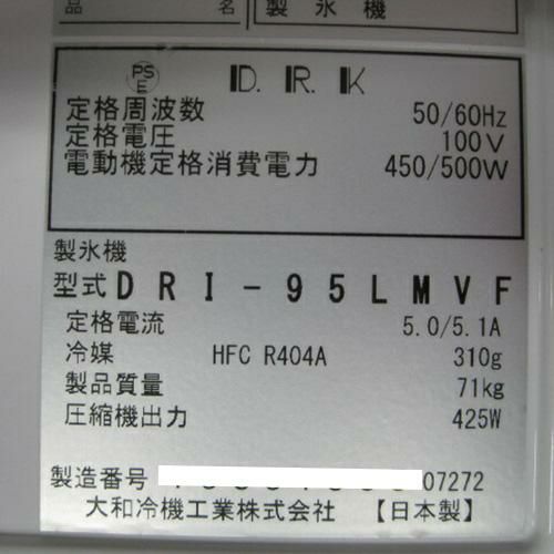 他の画像を見る 委託先様からの配送です。 【中古】製氷機 95kg 大和冷機 DRI-95LMVF 幅700×奥行506×高さ1200 【送料別途見積】【業務用】【委託販売-yck】 販売価格 ¥ 342,700 税込