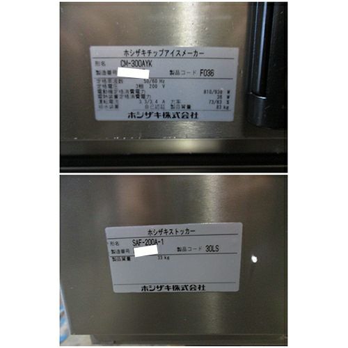 他の画像を見る 委託先様からの配送です。(西濃運輸営業所止) 【中古】チップアイスメーカー+ストッカー ホシザキ CM-300AYK(製氷機)SAF-200A-1(ストッカー) 幅700×奥行630×高さ1850 【西濃運輸営業所止】【業務用】【委託販売-nds】 販売価格 ¥ 220,000 税込