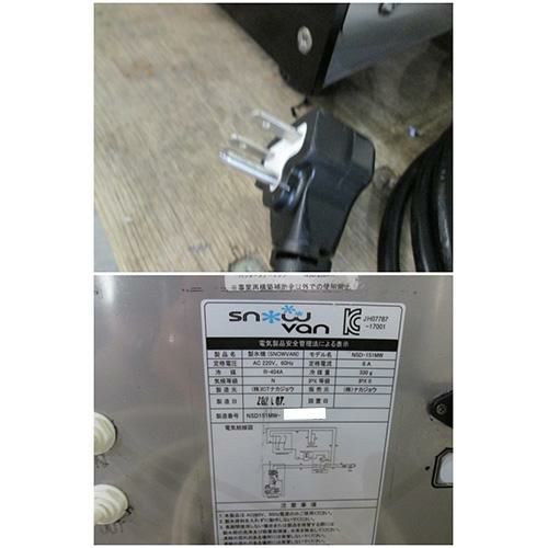 他の画像を見る 委託先様からの配送です。 【中古】スノーパウダーマシン 60Hz専用 ナカジョウ NSD-151MW 幅290×奥行453×高さ460(原料タンク含む588) 【送料別途見積】【業務用】【委託販売-nds】 販売価格 ¥ 275,000 税込