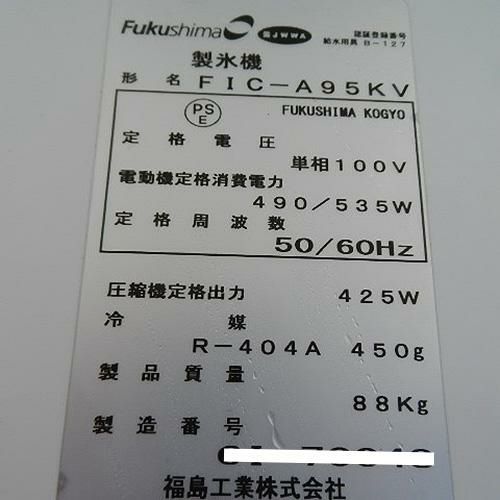 他の画像を見る 委託先様からの配送です。 【中古】製氷機 95kg フクシマガリレイ(福島工業) FIC-A95KV 幅700×奥行500×高さ1200 【送料別途見積】【業務用】【委託販売-k2c】 販売価格 ¥ 181,500 税込