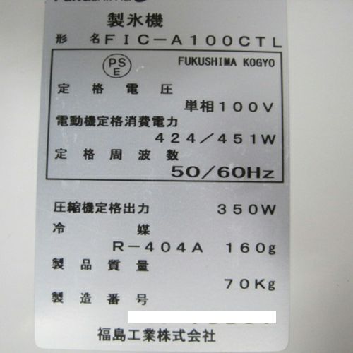 他の画像を見る 委託先様からの配送です。 【中古】製氷機 フクシマガリレイ(福島工業) FIC-A95KT 幅1000×奥行600×高さ800 【送料別途見積】【業務用】【委託販売-nds】 販売価格 ¥ 143,000 税込