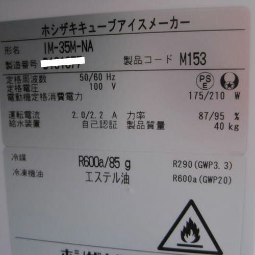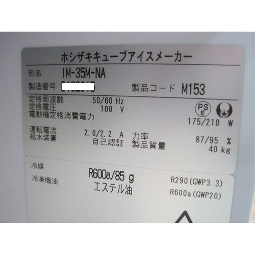 他の画像を見る 委託先様からの配送です。 【中古】自然冷媒製氷機 ホシザキ IM-35M-NA 幅500×奥行450×高さ800 【送料別途見積】【業務用】【委託販売-yck】 販売価格 ¥ 273,701 税込