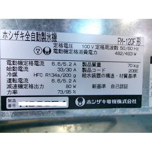 他の画像を見る 委託先様からの配送です。 【中古】製氷機 フレークアイスメーカー ホシザキ FM-120F 幅600×奥行600×高さ800 【送料別途見積】【業務用】【委託販売-kkn】 定価 ¥ 1,092,300 (税込)のところ 販売価格 ¥ 86,900 税込