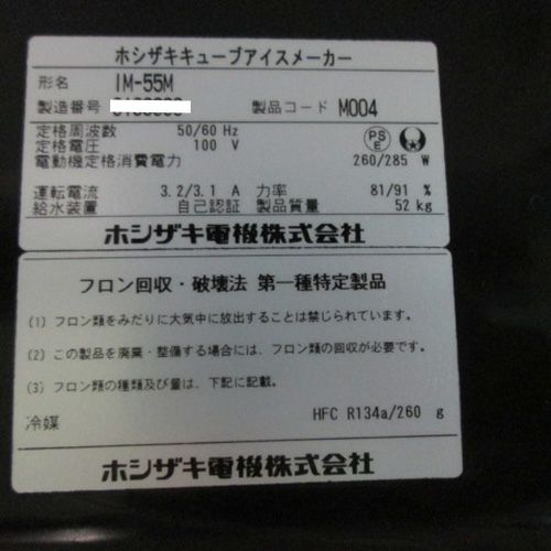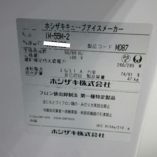 他の画像を見る 委託先様からの配送です。 【中古】製氷機 ホシザキ IM-55M-2 幅630×奥行525×高さ800 【送料別途見積】【業務用】【委託販売-rks】 定価 ¥ 1,087,900 (税込)のところ 販売価格 ¥ 308,000 税込