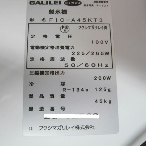 他の画像を見る 委託先様からの配送です。 【中古】製氷機 フクシマガリレイ(福島工業) FIC-45KTX 幅630×奥行450×高さ800 【送料別途見積】【業務用】【委託販売-rks】 定価 ¥ 895,400 (税込)のところ 販売価格 ¥ 210,100 税込