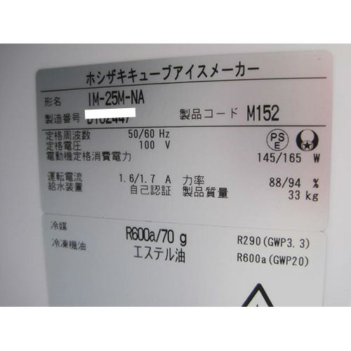 他の画像を見る 委託先様からの配送です。 【中古】製氷機 ホシザキ IM-25M-NA 幅395×奥行450×高さ770 【送料別途見積】【業務用】【委託販売-yck】 販売価格 ¥ 192,050 税込